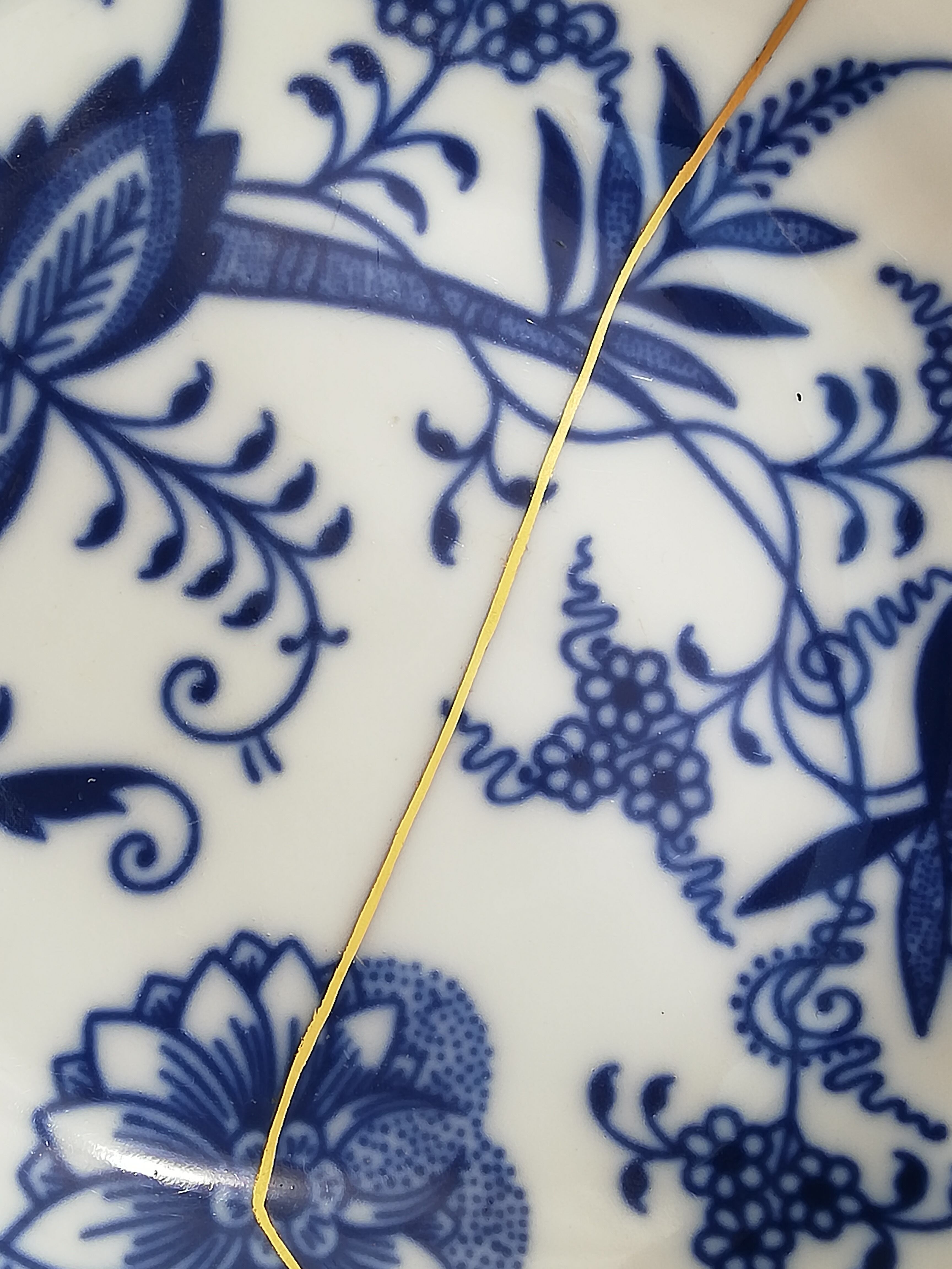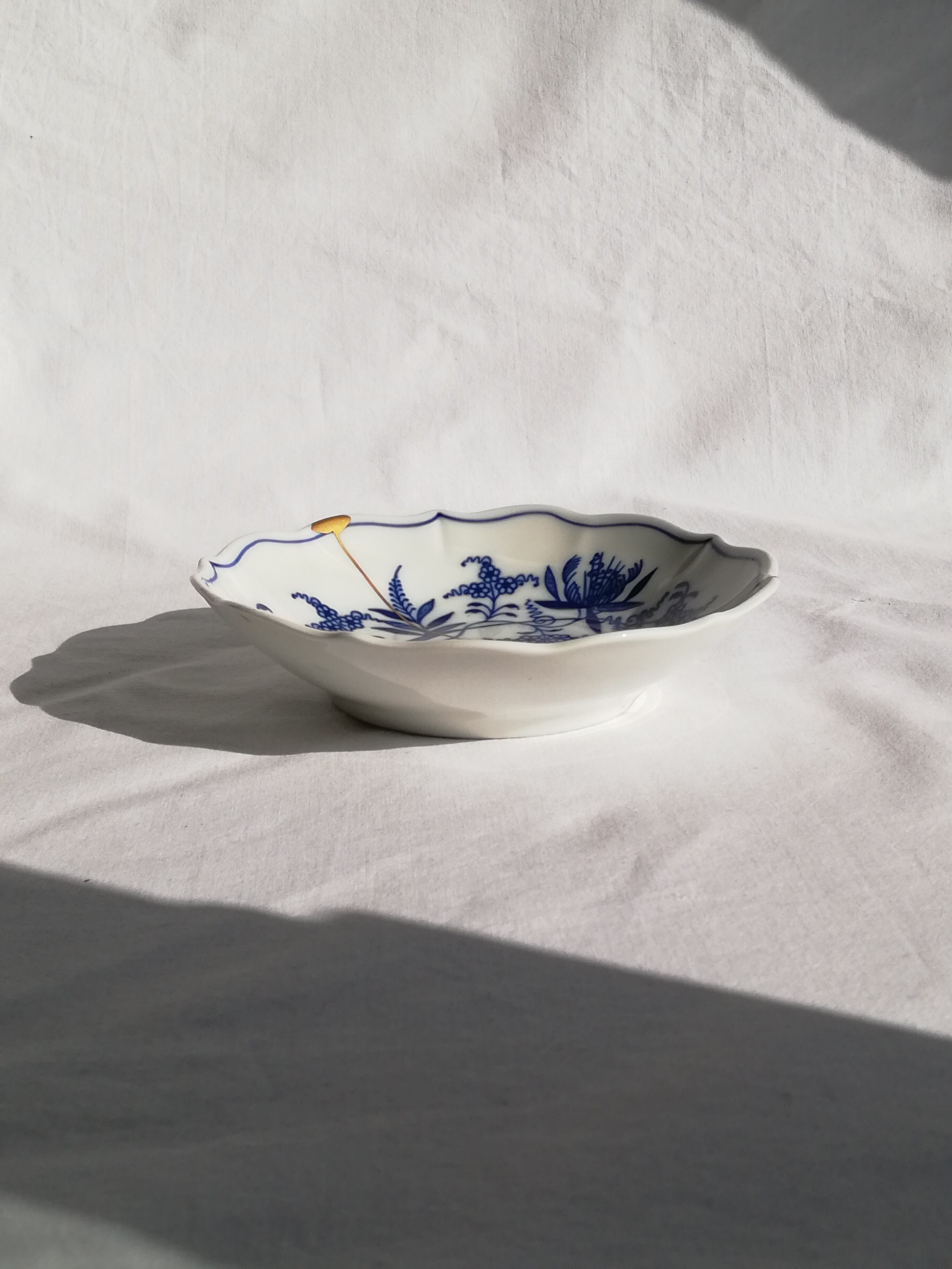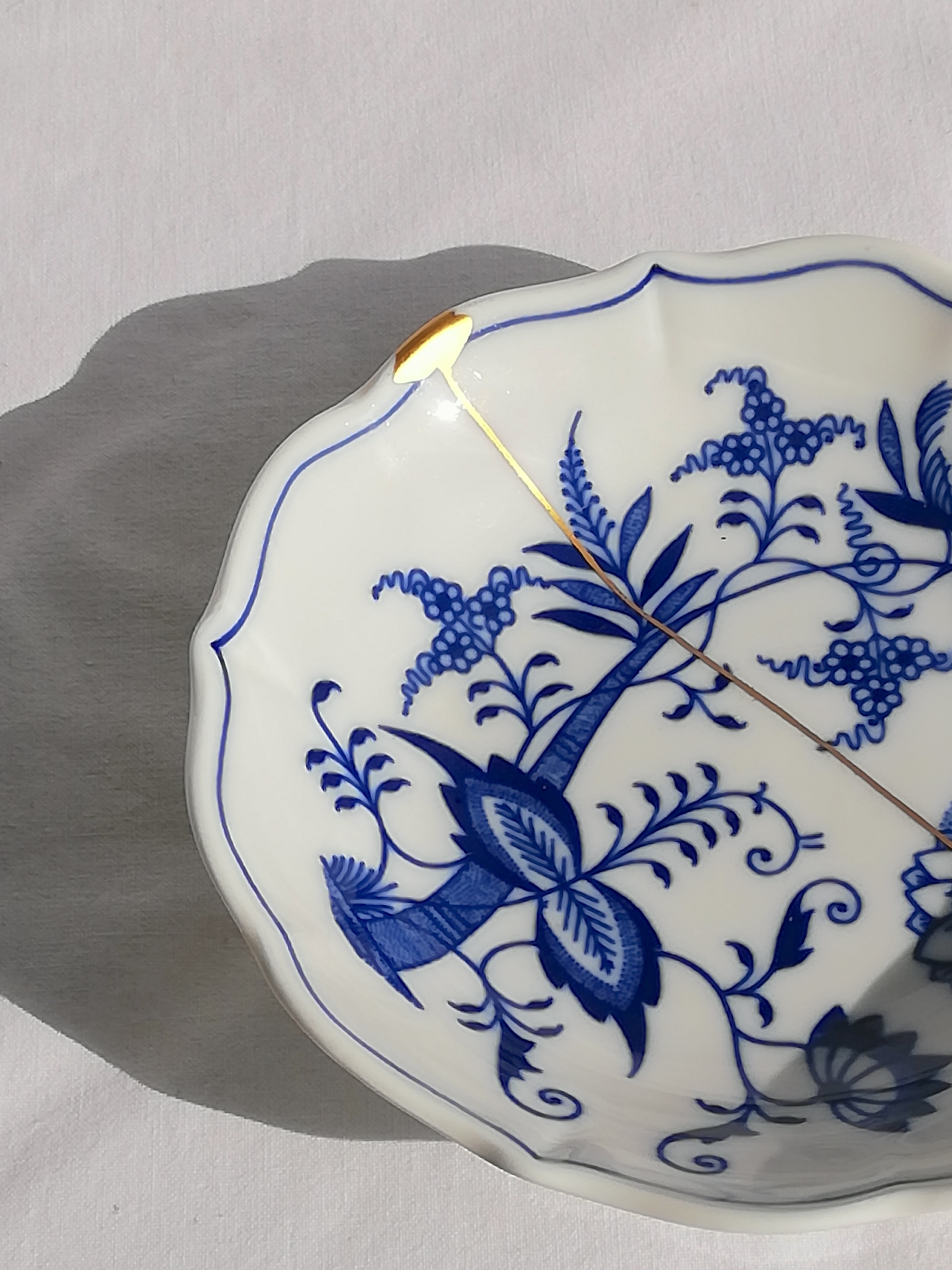 ブルーオニオン皿|金継ぎ修理済(一点もの) Kintsugi Repaired Plate