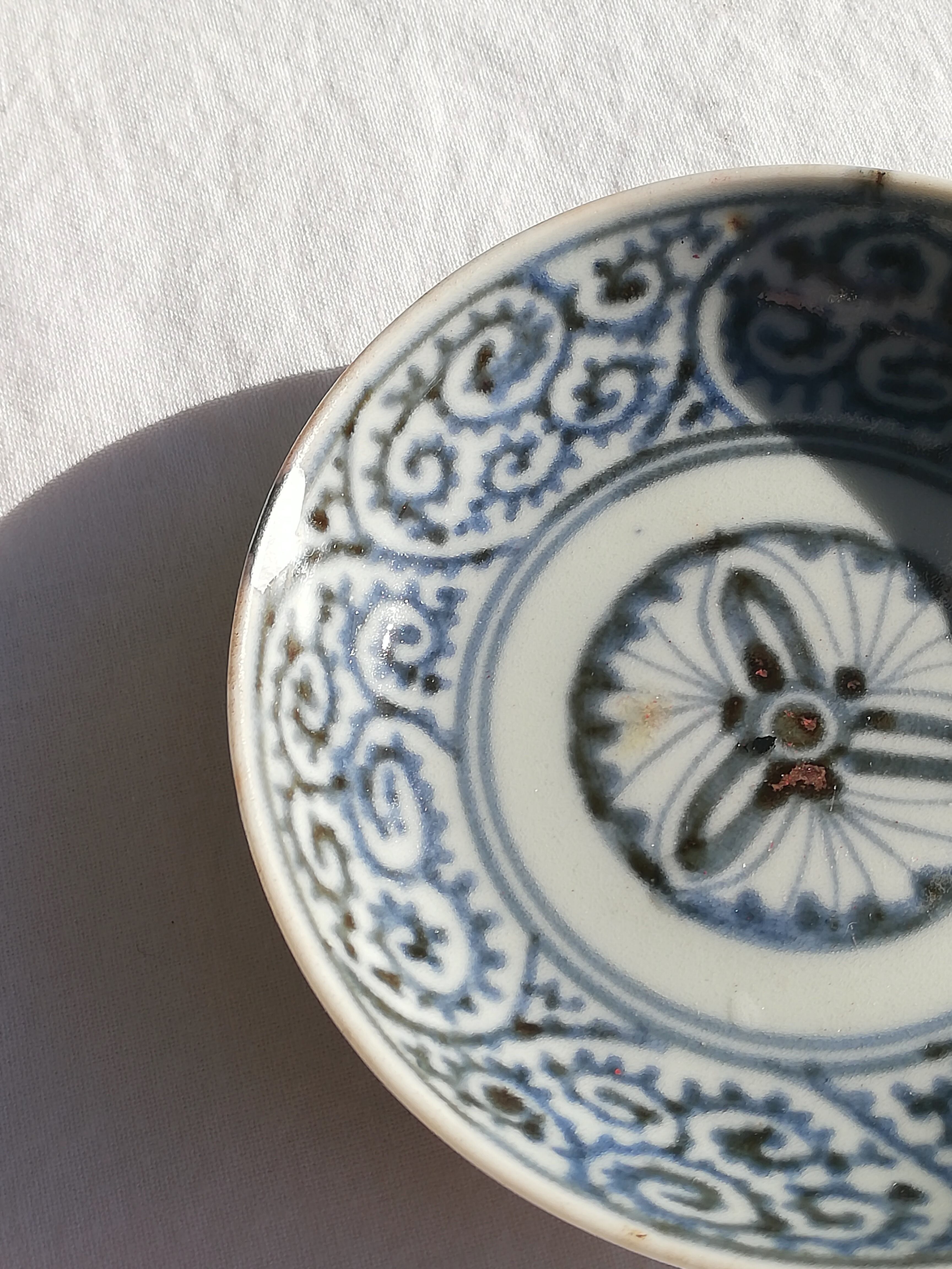 染付 小皿|錫継ぎ|骨董陶器|金継ぎ修理済(一点もの)Kintsugi Repaired Plate